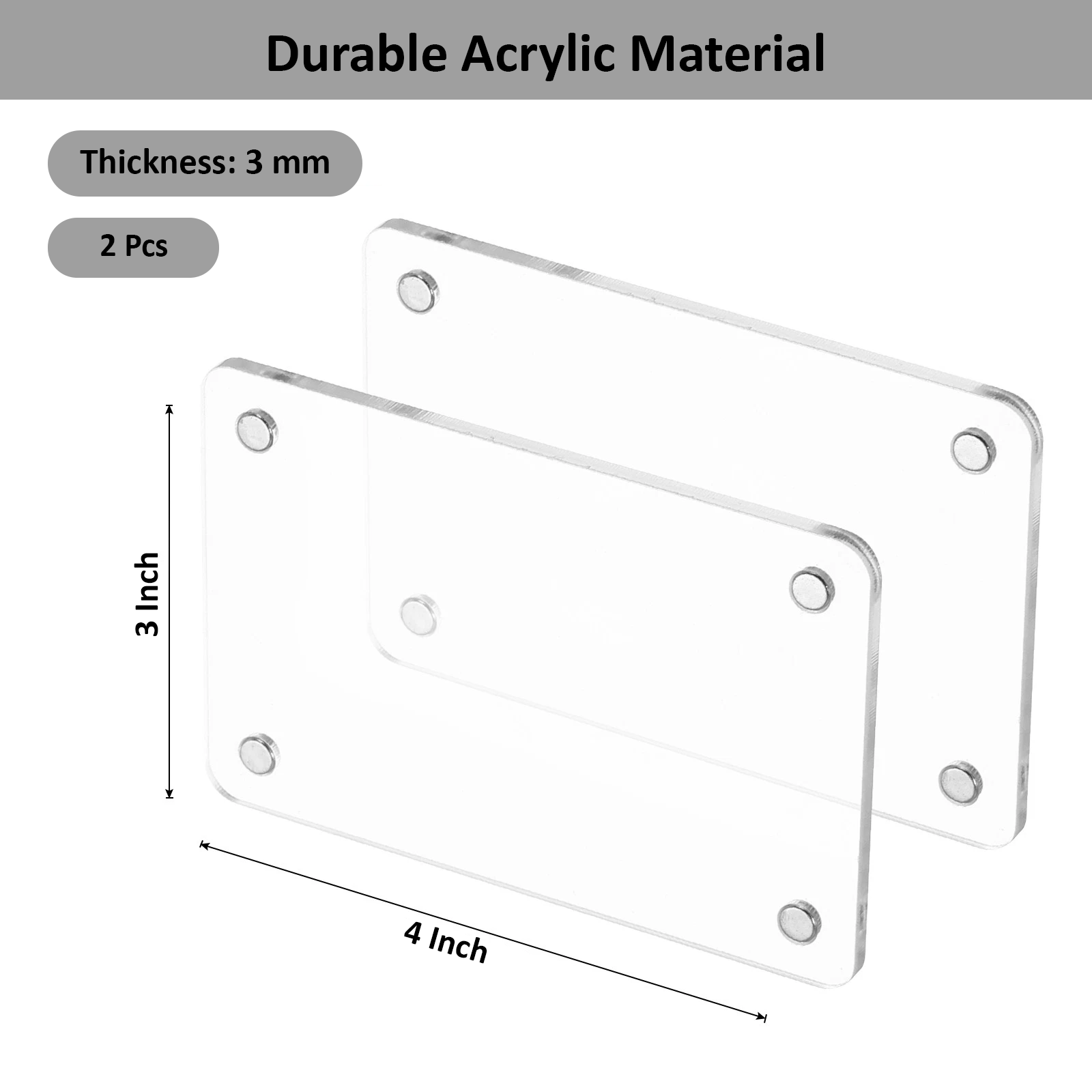 These 2 acrylic fridge magnetic frames, each measuring 3 x 4 inches, offer a sleek and durable way to display your favorite photos, notes, or reminders directly on your refrigerator or any metal surface. Crafted from clear acrylic, they provide a professional look while the strong magnets ensure secure attachment without damaging surfaces. Ideal for keeping important information visible and adding a personalized touch to your kitchen or office space.