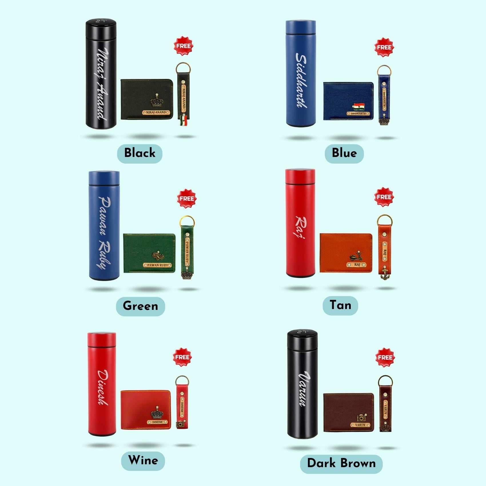 This hamper includes the most important things men need on a day-to-day basis. A Wallet for their cards and currency, a keychain for their keys & a temperature bottle with LED display for showing the water temperature.
