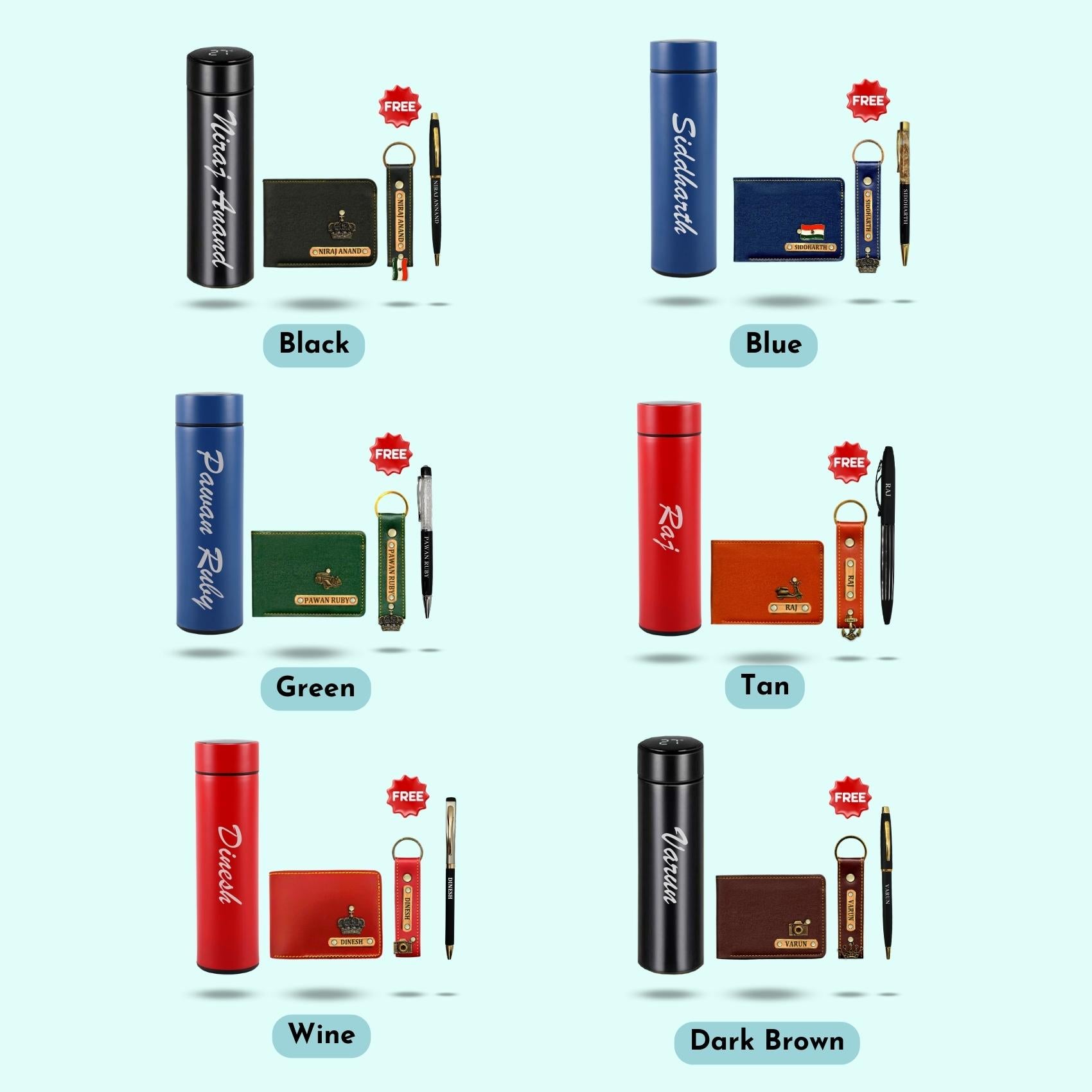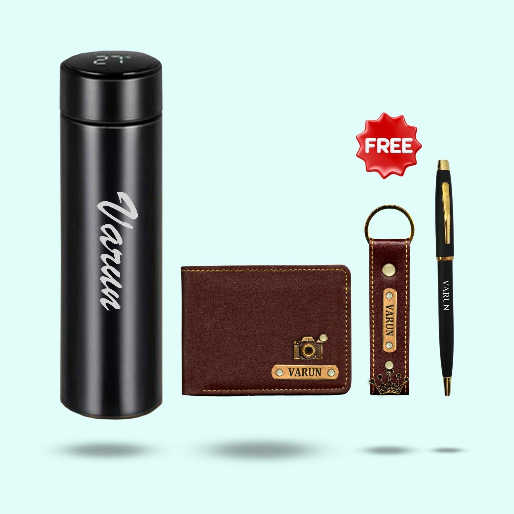 This hamper includes the most important things men need on a day-to-day basis. A Wallet for their cards and currency, a keychain for their keys, a pen & a temperature bottle with LED display for showing the water temperature.