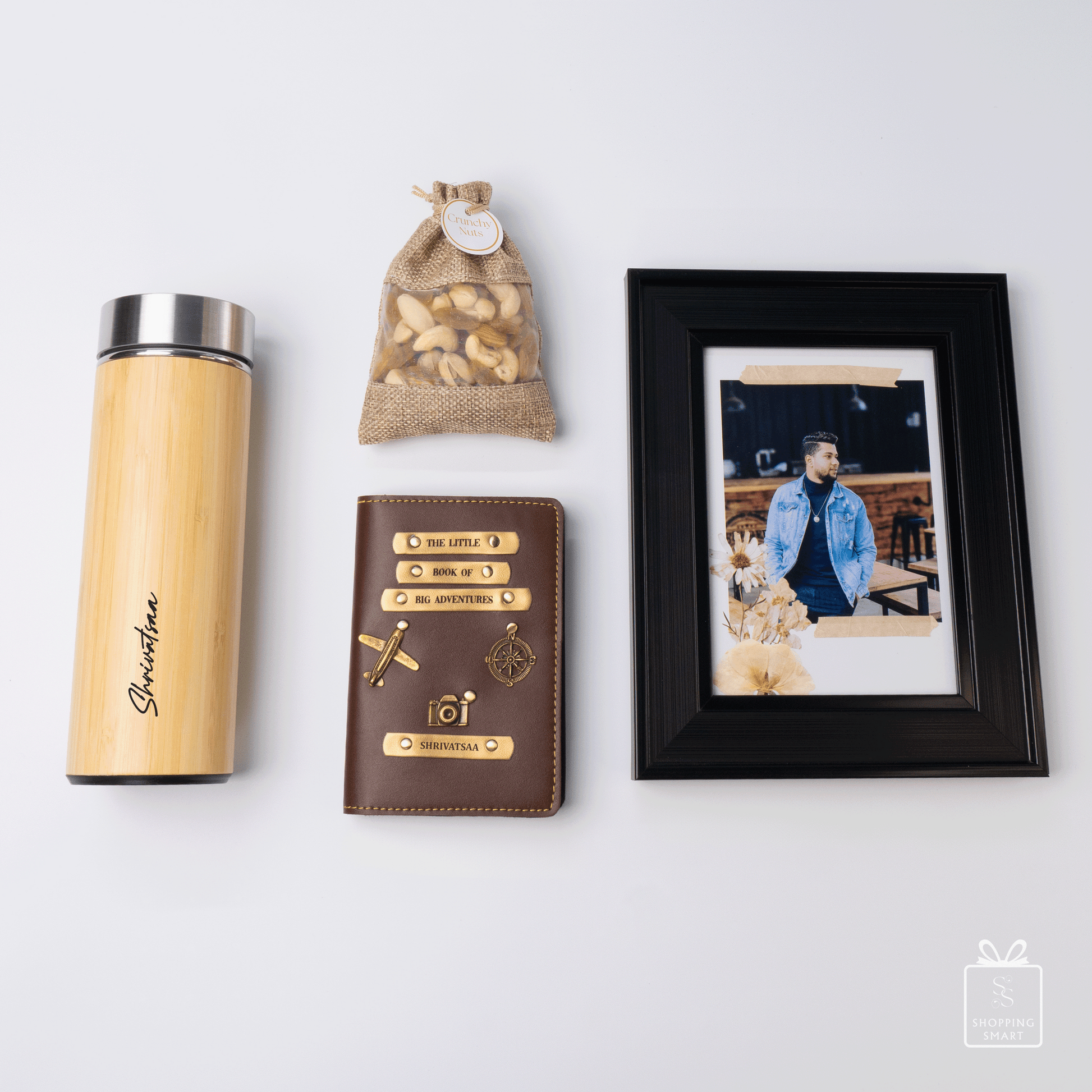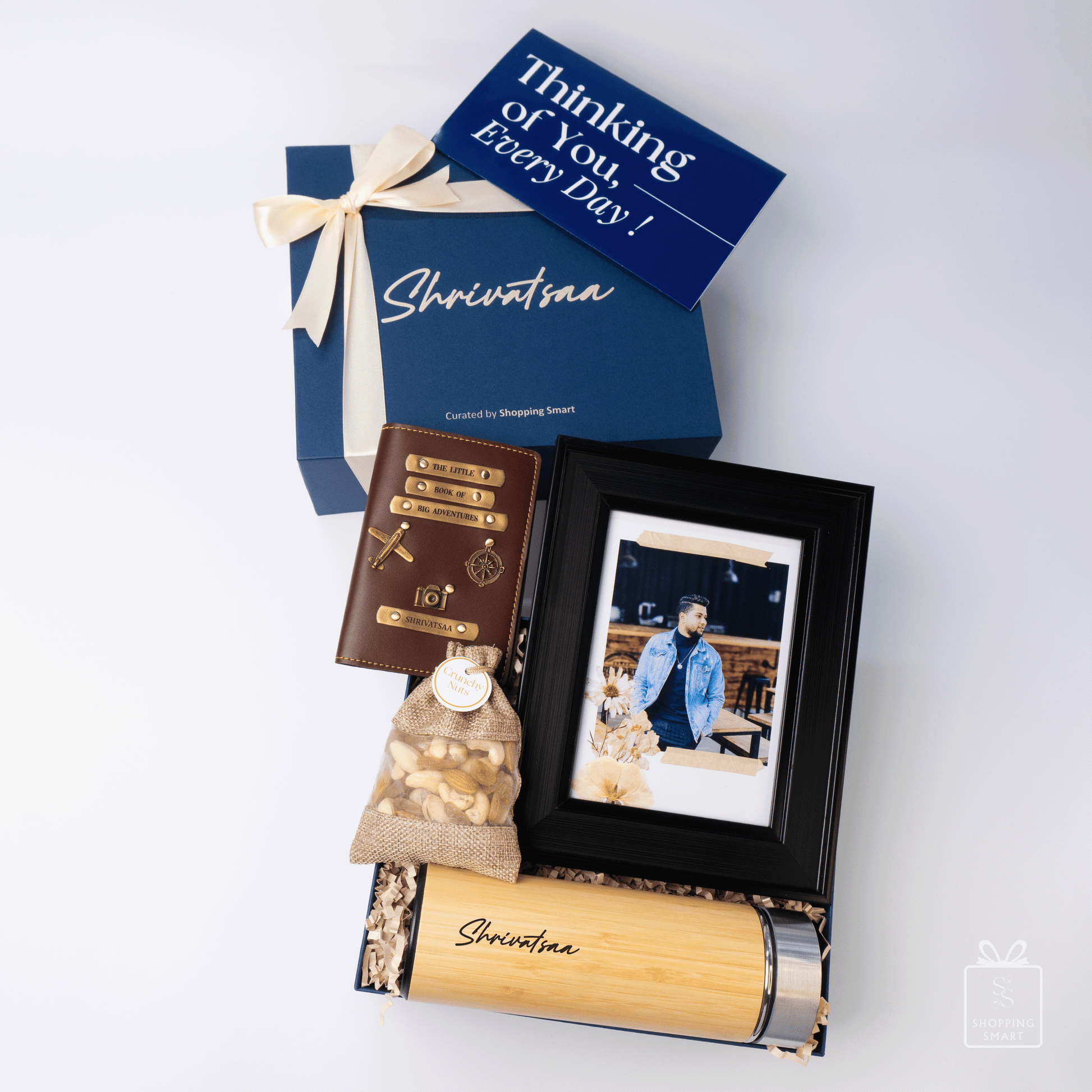 Make every moment memorable with this premium personalized gift hamper, thoughtfully curated to express care, adventure, and elegance. Perfect for Birthdays, Anniversaries, Valentine's, Bon Voyage, Corporate Gifting, or just to say “I’m thinking of you.”
