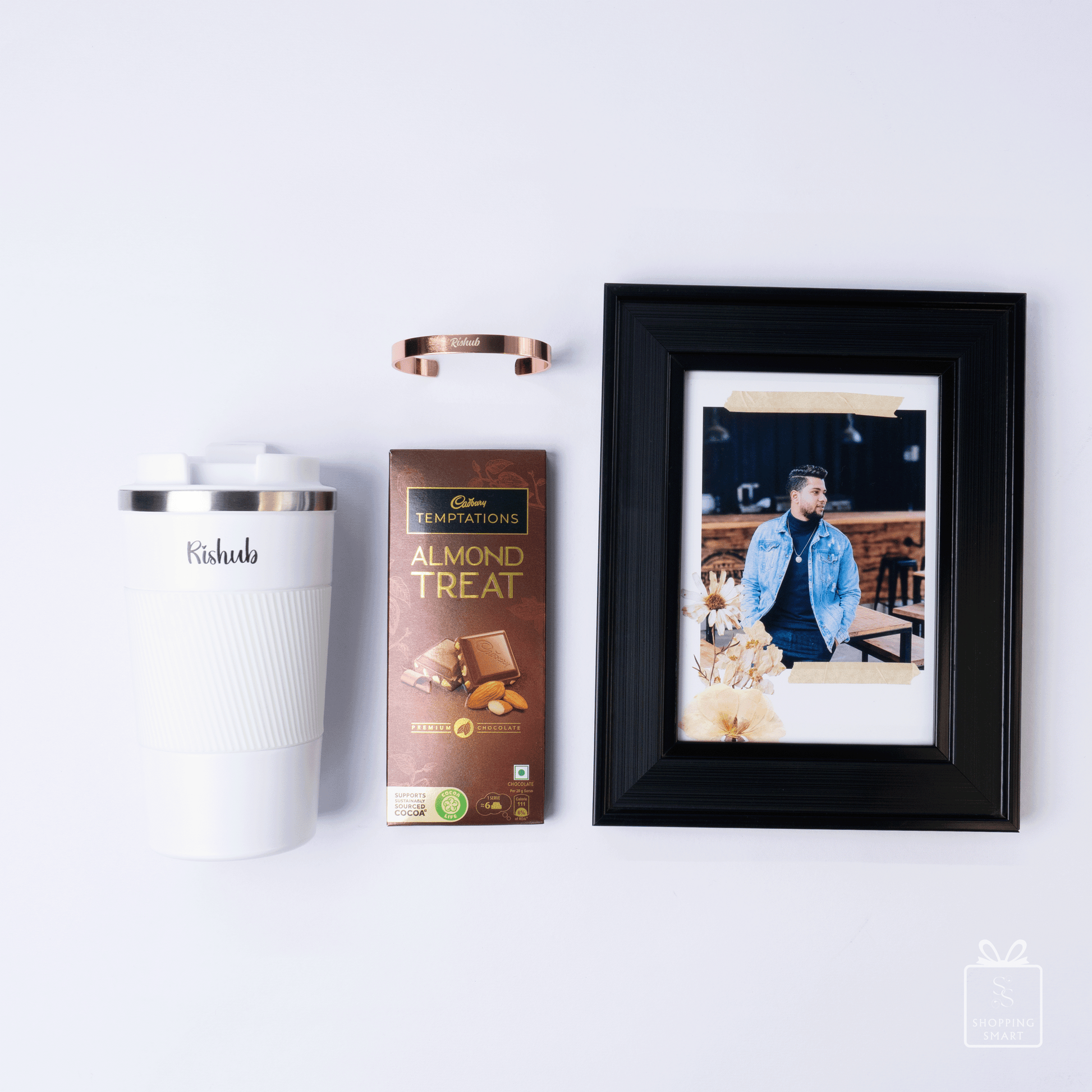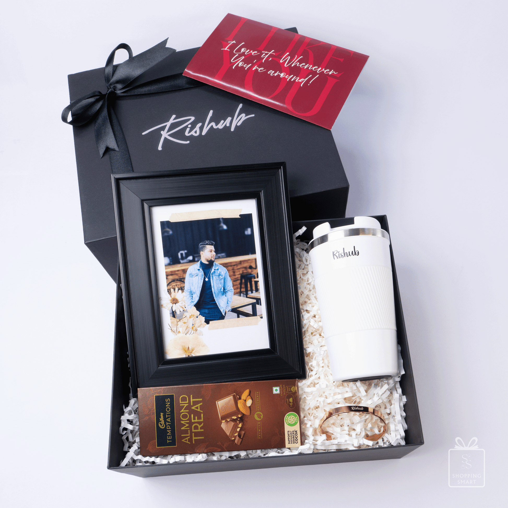 Celebrate love, friendship, or gratitude with this elegant gift box! Includes a floral 5R photo frame, stylish travel mug, charm bracelet, premium chocolate, and a heartfelt card — all beautifully packed to create lasting memories.