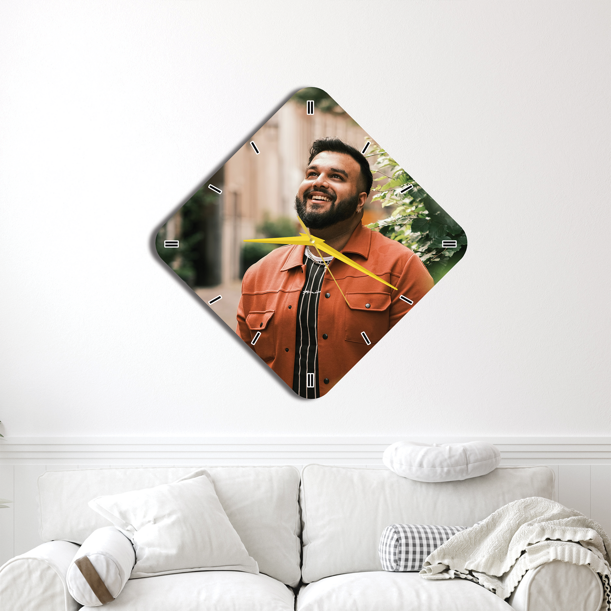 Our personalized acrylic wall clocks combine functionality and style, allowing you to customize them with your favorite photos. Crafted from high-quality, clear acrylic, these wall clocks are designed to be both durable and visually appealing. Whether it's a cherished family photo, a beloved pet, or a scenic landscape, your chosen image will be printed in vibrant, fade-resistant colors, making your clock a unique and meaningful piece of decor.