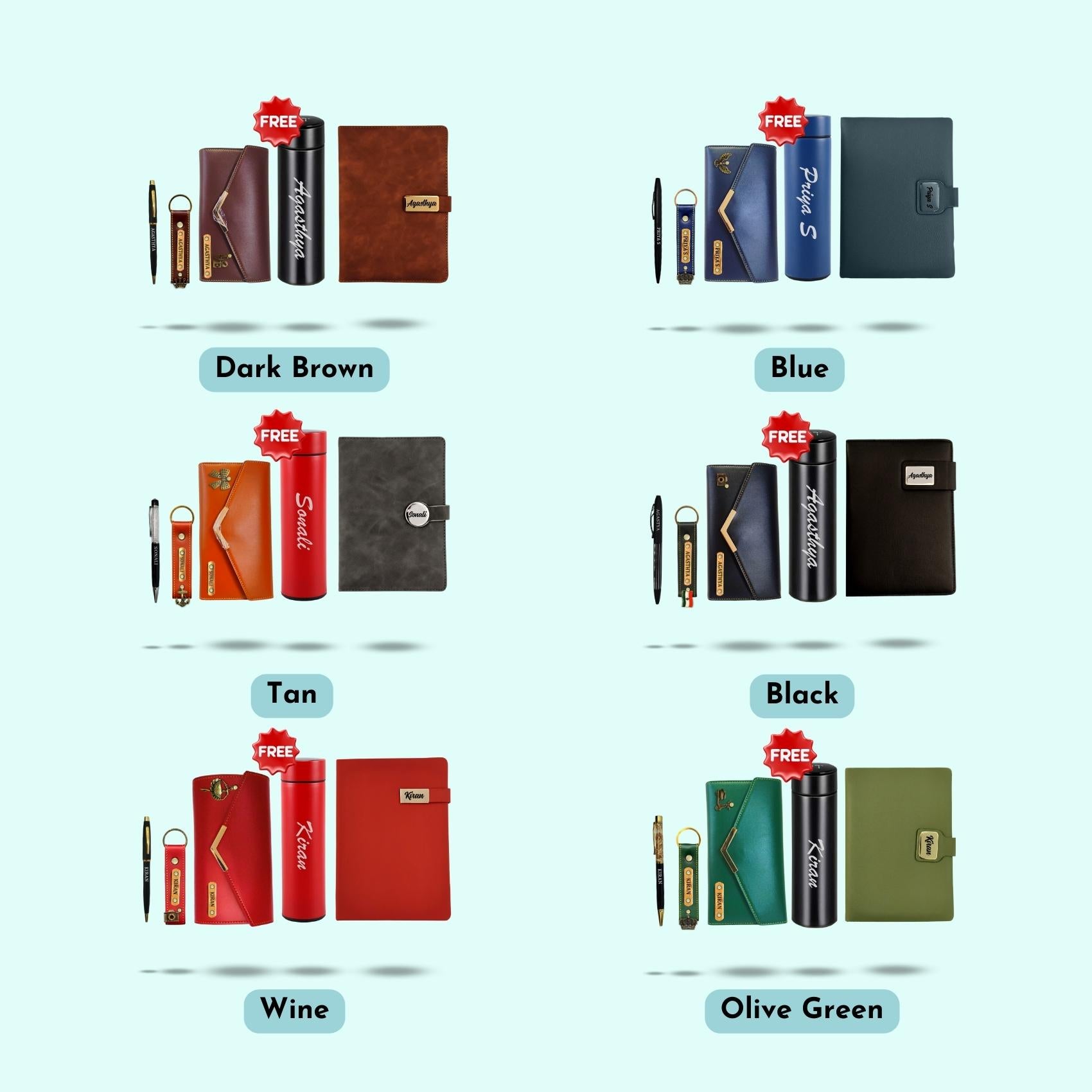 Personalised Essential Hamper for Women 5-in-1 - Women's wallet, Keychain, Diary, Pen & Free Bottle