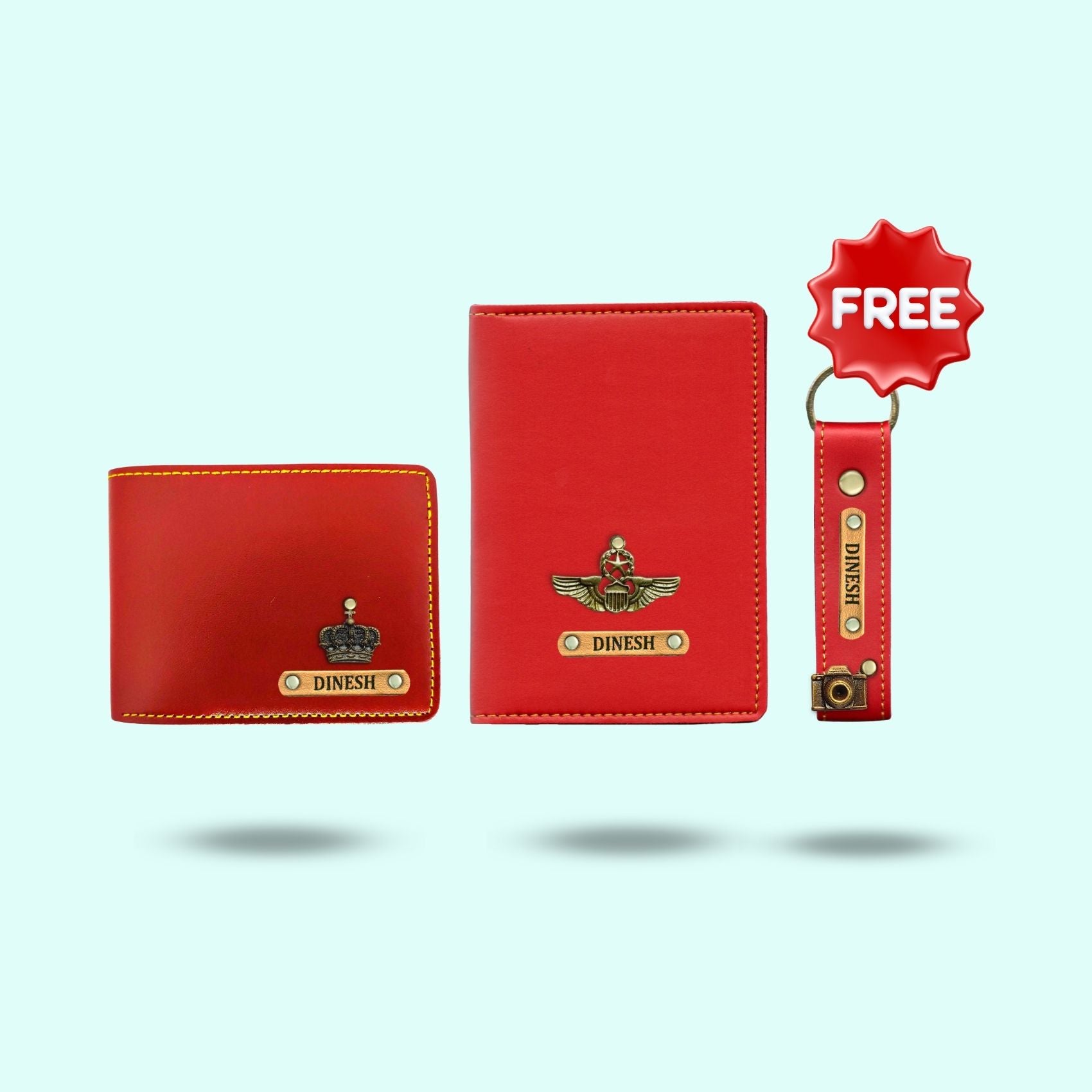This hamper includes the simplest product but yet the most important things men need on a day-to-day basis. A Wallet for their cards and currency, a keychain for their keys. a passport cover for their passport, Packed in a beautiful box and can be personalized with their name and a Charm.