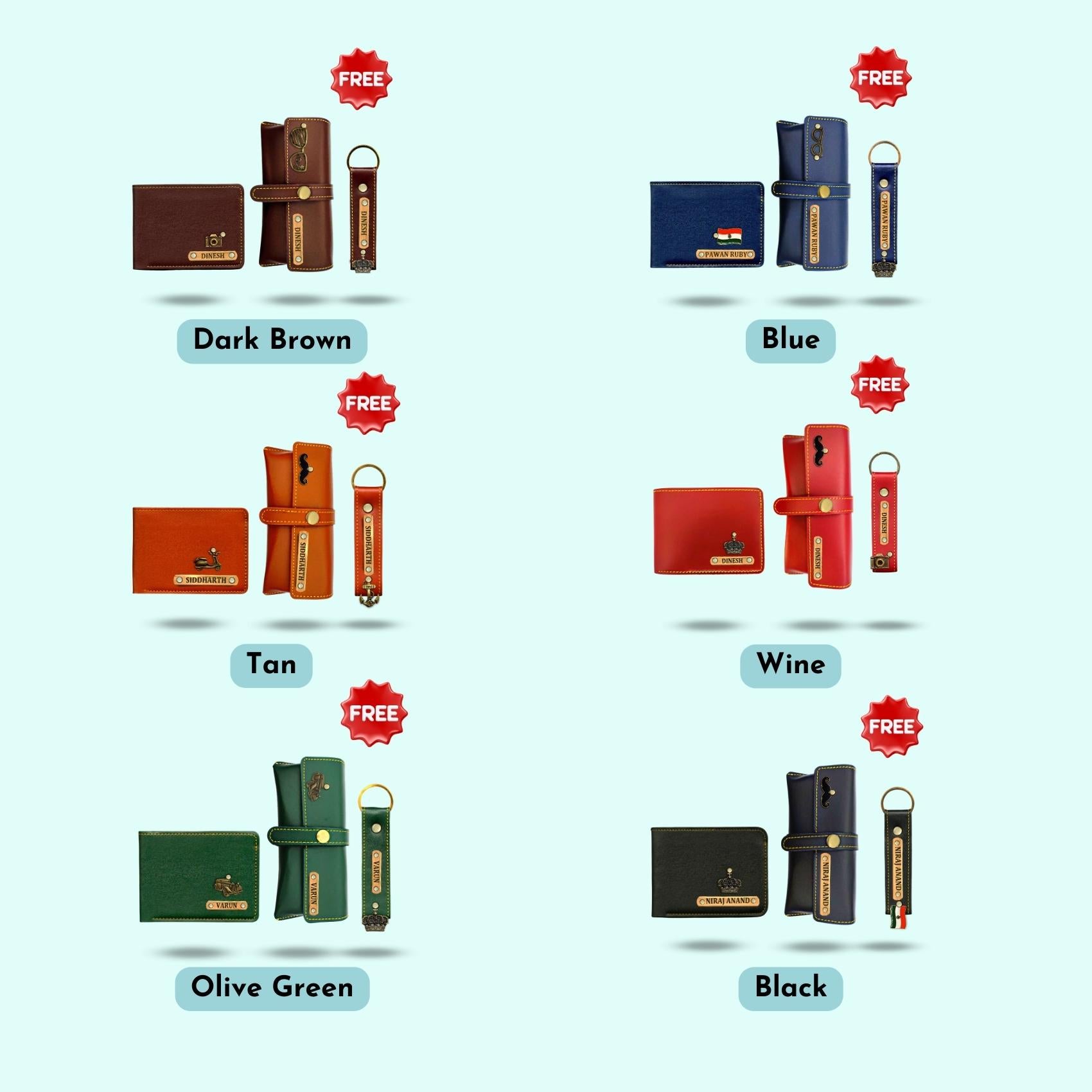 This hamper includes the simplest product but yet the most important things men need on a day-to-day basis. A Wallet for their cards and currency, a keychain for their keys. a Sunglass case for their sunglass, Packed in a beautiful box and can be personalized with their name and a Charm.