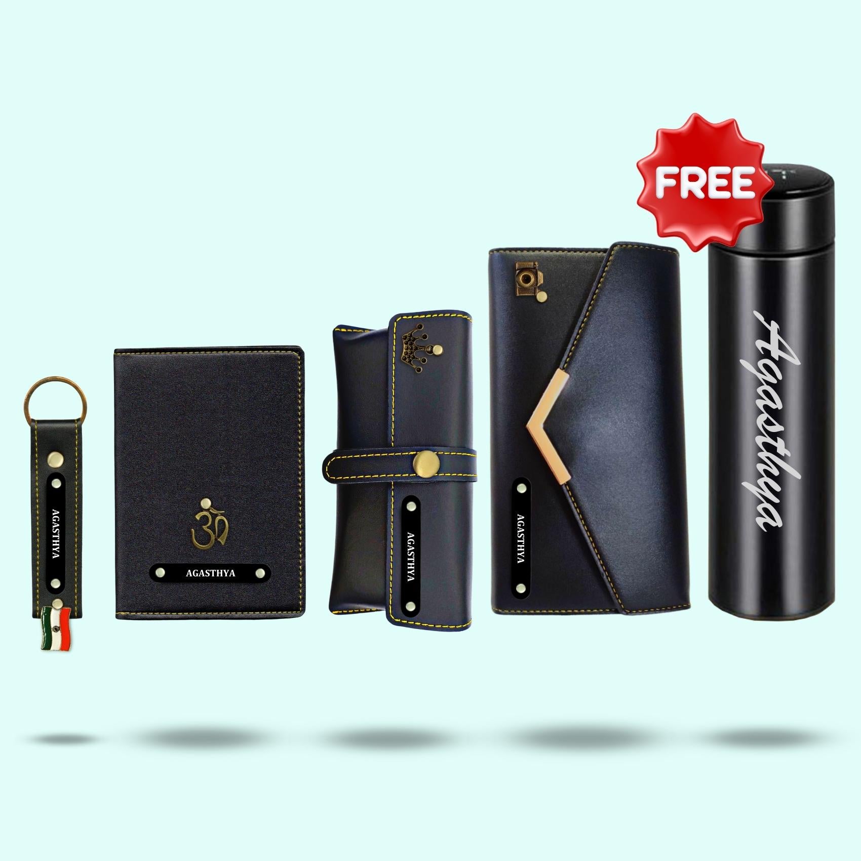 Personalized Gift Hamper Set for Women ( Includes 1 Free Bottle ) - Black Metal Name Tag