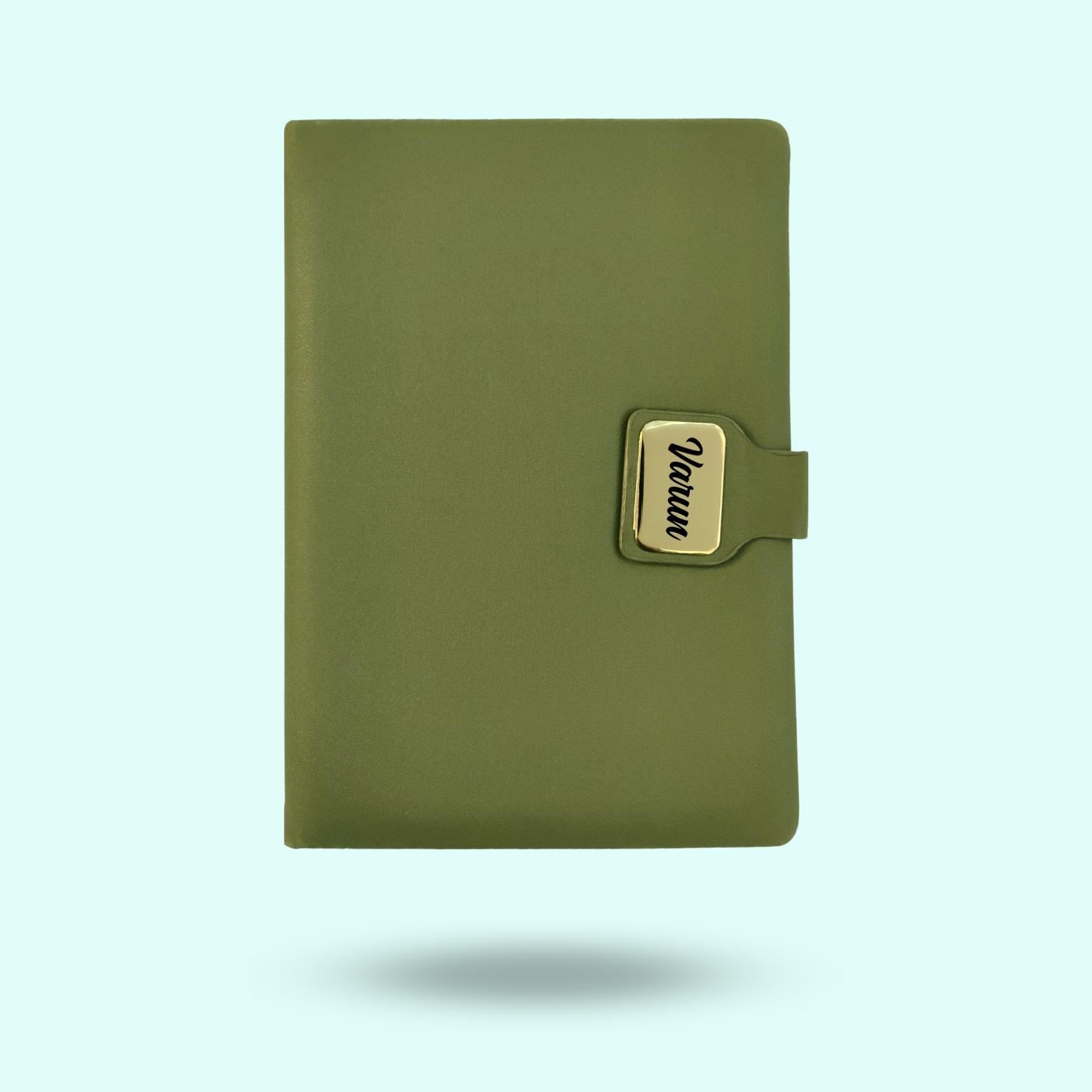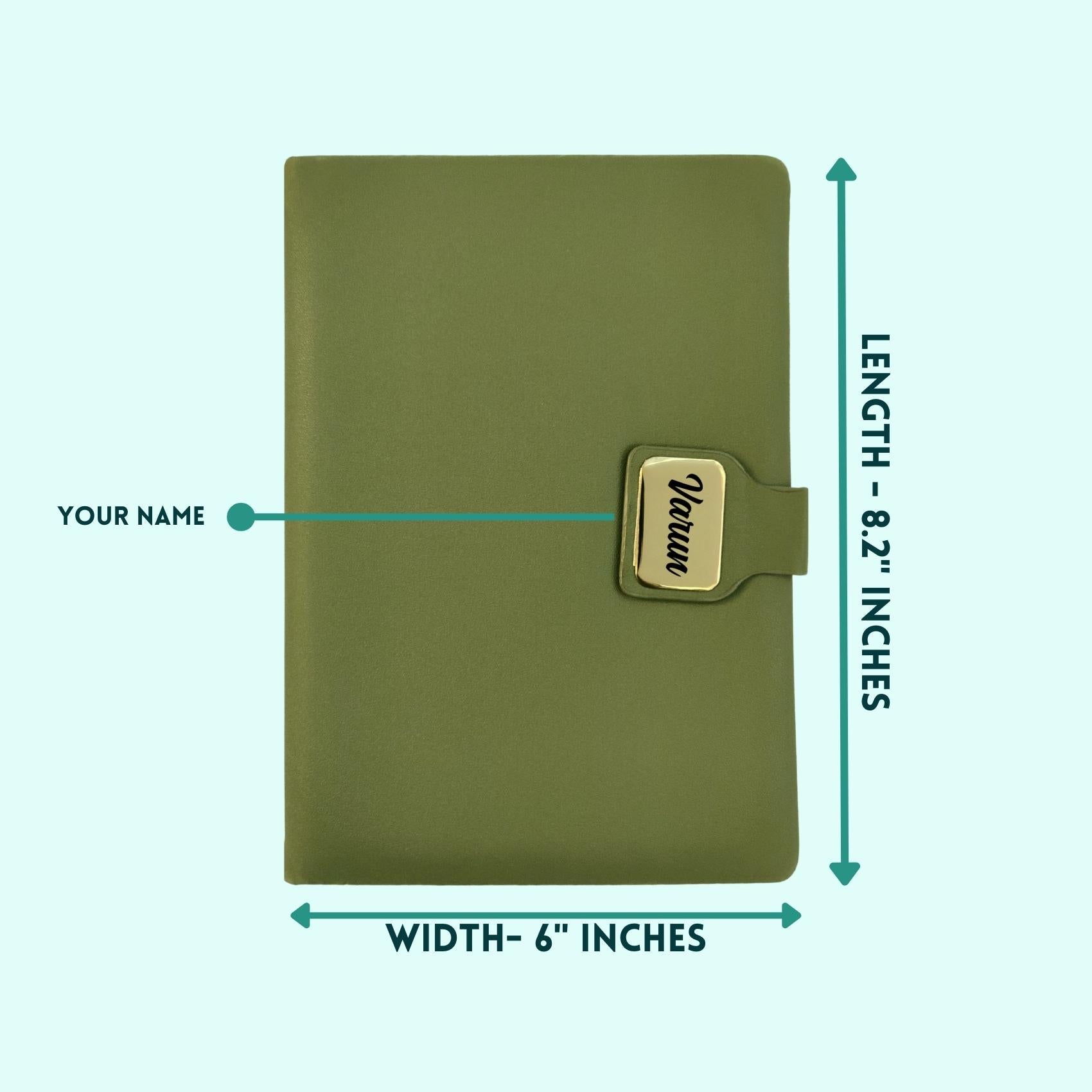 The Green PU Diary is a stylish and practical way to stay organized. Featuring a PU cover and metal name plate, the diary provides a durable and secure closure. This diary is also designed with fine stitching around the edges and smooth round corners, measuring 150x205 mm. Get the professional look with its timeless design.